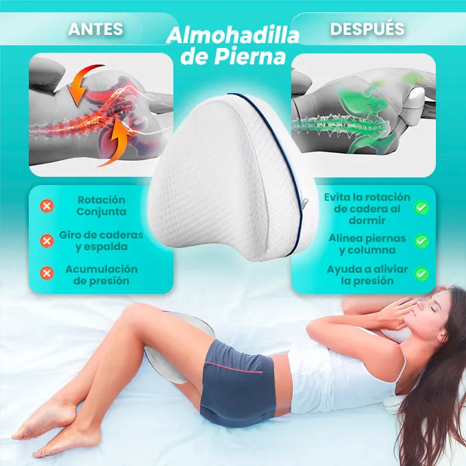 Su forma suave y curva, evita que las piernas choquen o se tuerzan durante la noche.