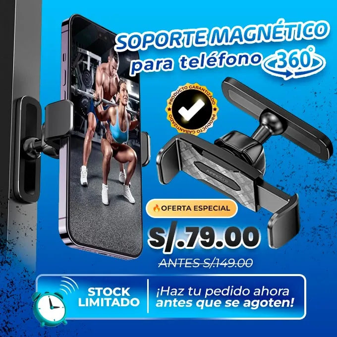 👉 Nuestro Soporte Magnético para Celular es la solución para grabarte con estabilidad fijándolo a equipos metálicos del gimnasio, sin trípodes ni apoyos improvisados